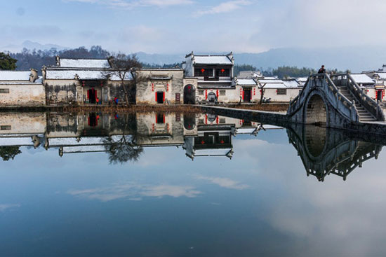 你可以清晨去村邊的月沼漫步,晨光下,看著纖柔的荷葉和碧波中黑白分明的建筑的倒影,足以讓你把這個春節(jié)過成一首雋永的詩歌。